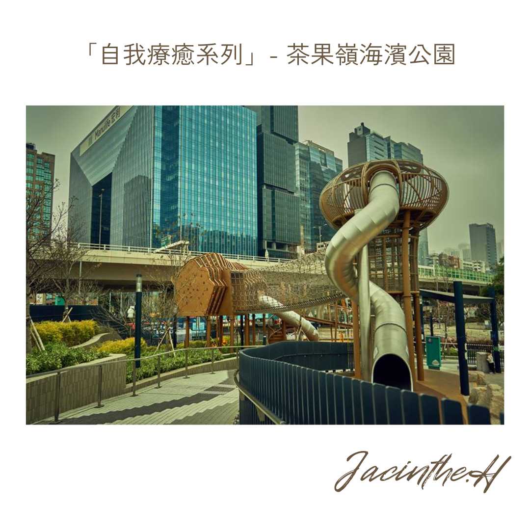希望在這座城市中,在這裏,在這⼀刻,獨⾃尋找⾃然與休憩裡的⼀⼨⼩空間。 我沿著觀塘繞道旁的⼩路⾛進這個區域,進入眼簾的是三⽶左右的⾦屬旋轉滑梯,⽊⾊系的建築最為吸睛。麻繩編織的攀爬架和吊籃徹底勾起埋藏在內⼼裡,那不曾抹去的「童⼼」。穿著裙⼦和⽪鞋的我禁不住「誘惑」,爬上這個充滿冒險咁的遊樂場。放下⼿中的重物,趁著⼈數不多的時候,⼩⼼翼翼地爬上了這座⼩冒險地帶。腳下踏著搖搖晃晃的吊籃,伴隨著的前進的步伐,似乎重疊著兒時那簡單⽽純粹的快樂,宛轉清脆的笑聲迴盪在⽿旁。這⼀刻,我似乎能再次抓緊,感受和享受⾃⼰那曾簡單的快樂。 重疊著的影像裡,那是兒時的我,⾚腳短髮奔跑在鄉間的記憶。依靠著家裡附近的圍牆,攀爬在樹梢上,矯健地穿梭在龍眼樹間,樹枝的末梢總會幫在我的雙臂間留下⼀道道⼩⼩的⾎痕,但微末的疼痛感也壓制不住那⼀股攀爬冒險的衝勁。記憶漸漸回疊至眼前已經長⼤的我,讀書畢業,開始就業,為⾃⼰⼈⽣的下⼀個階段鋪墊,規劃和算著⼀筆筆需要⽀付的帳本。開始學著⼤⼈們按部就班前⾏,每天都重複著⼀模⼀樣的循環,機械式地完成⼿上需要完成的代辦事項,也漸漸淹沒了⼩時候愛玩愛鬧的⼩性格。我想這或許這是成長的代價吧!